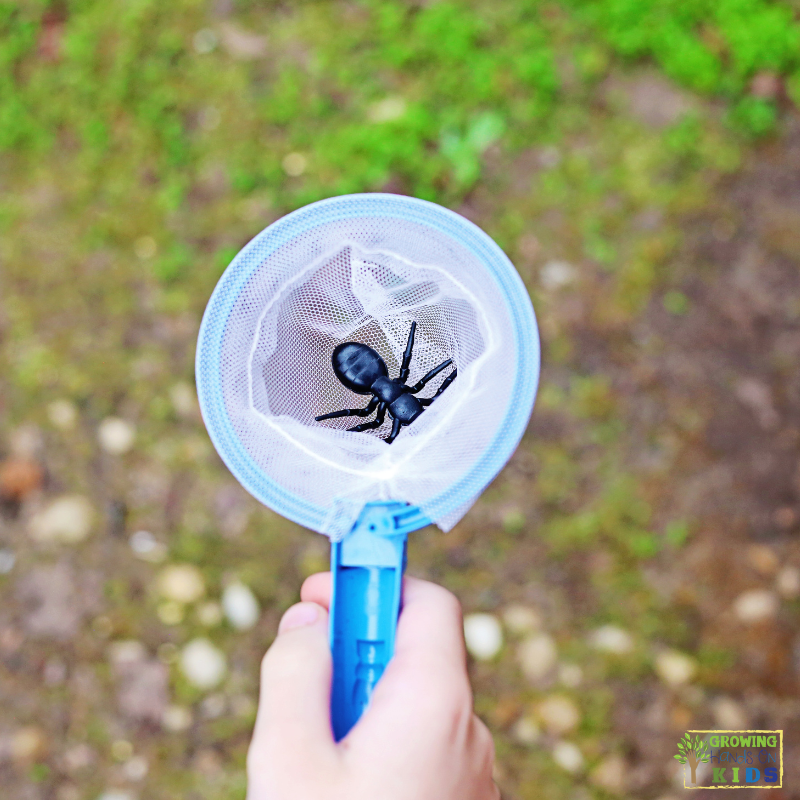Once they catch a bug, they place it into their bug container. (Dollar Tree has bug kits with a container and bug net, or you could just use a jar)