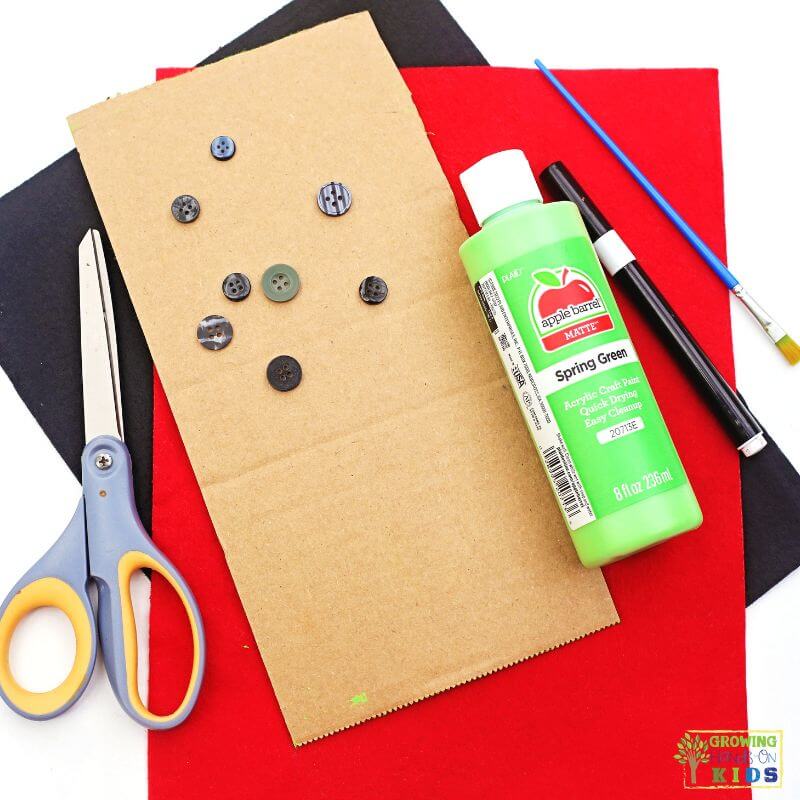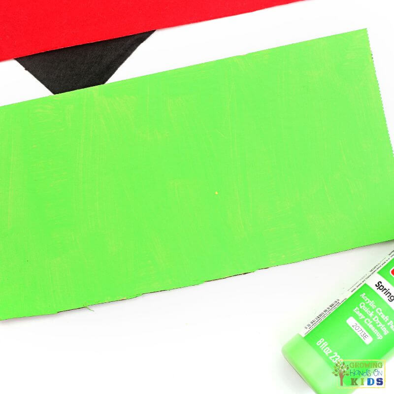 Paint a piece of cardboard green and set it aside to dry completely. - Create the ladybug body
