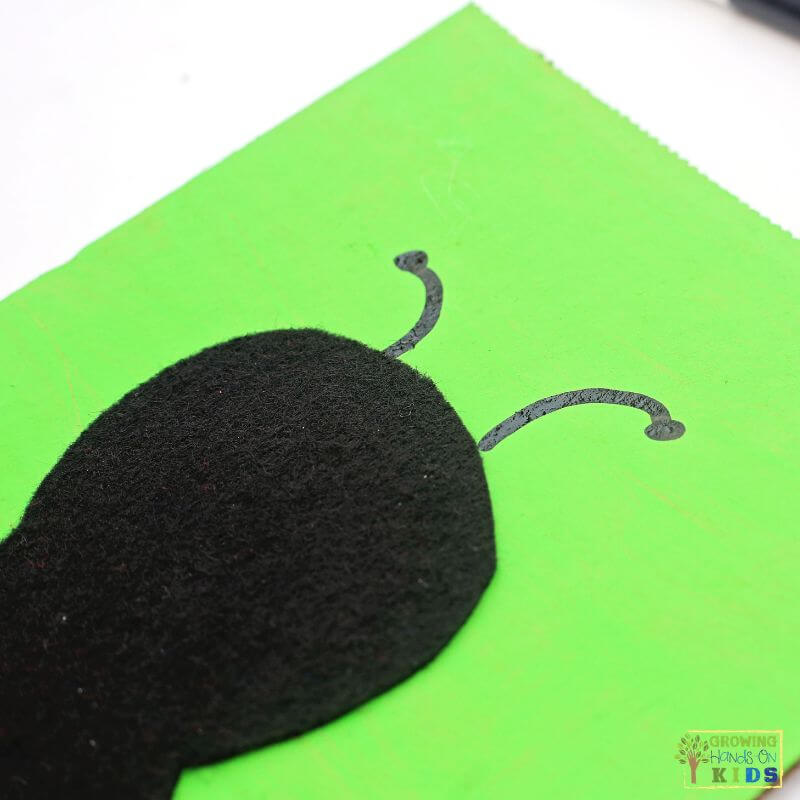 Cut a simple ladybug body shape from black felt. Glue it near the center of the cardboard. - Add antennae